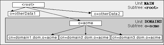 - dc=domainN,dc=dom,o=acme